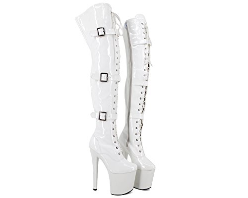 WONDERHEEL offer Appr.8" stiletto heel white patent sexy heel platform thigh high boots three buckles. This awesome product currently limited units, you can buy it now for £79.00, You save -